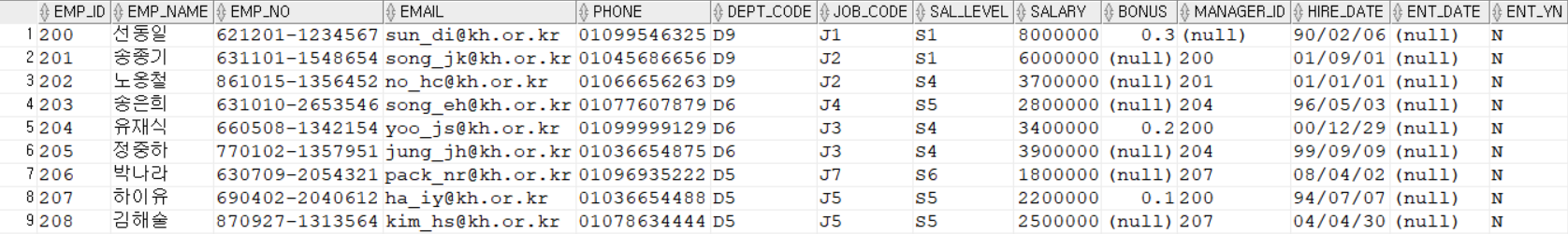 SELECT EMP_ID, EMP_NAME, DEPT_CODE