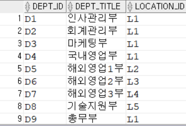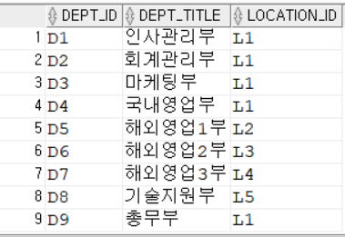SELECT * FROM DEPARTMENT; -- LOCATION_ID