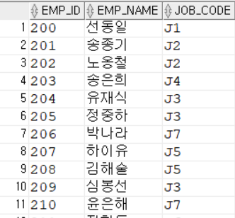 SELECT EMP_ID, EMP_NAME, JOB_CODE