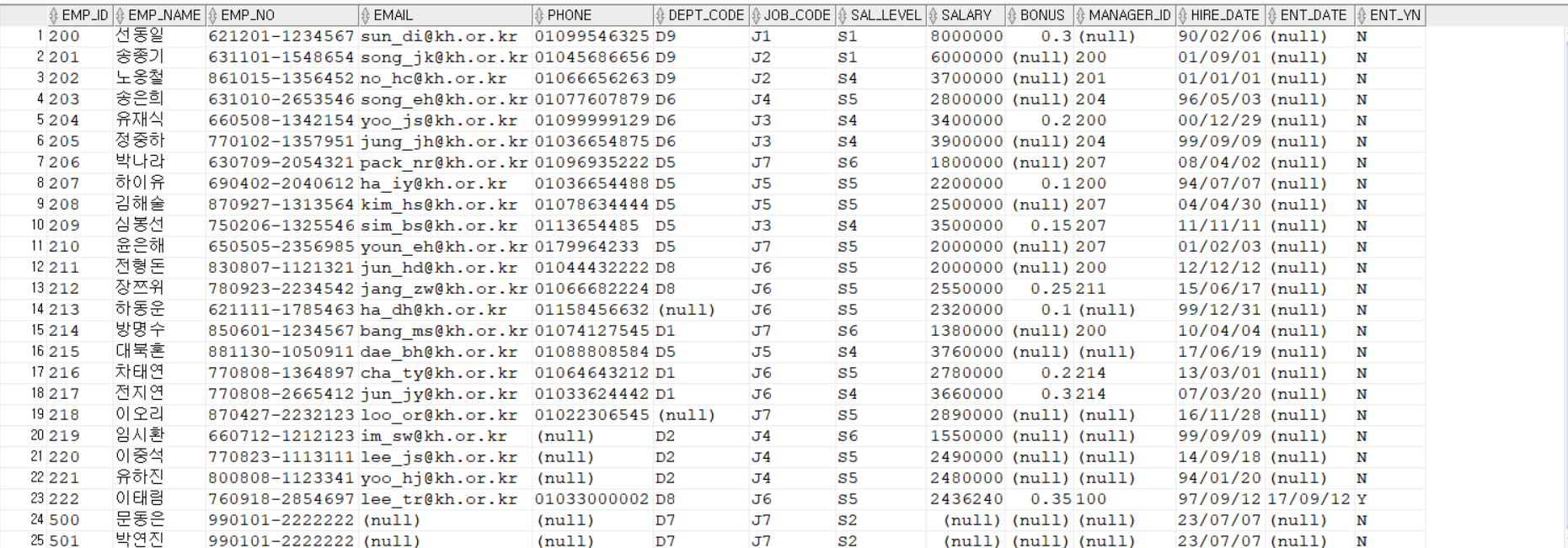 FROM EMPLOYEE -- EMPLOYEE에 있는건 무조건 다 나오는거임