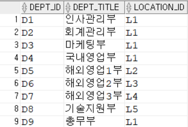 SELECT * FROM DEPARTMENT; -- DEPT_ID