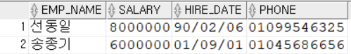 SELECT EMP_NAME, PHONE