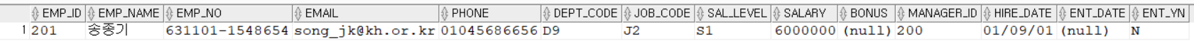 WHERE EMP_ID = 201;