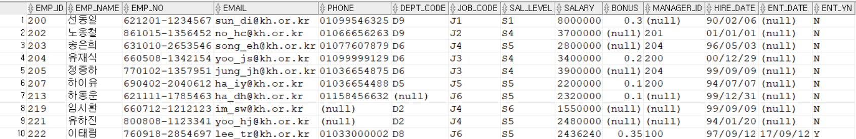WHERE EMP_NAME LIKE '%연';