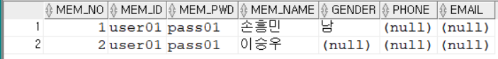 INSERT INTO MEM_NOTNULL VALUES (1,'user01','pass01','손흥민','남',NULL, NULL);