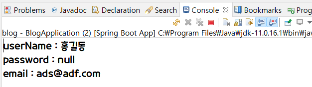 System.out.println("password : " + user.getPassword());