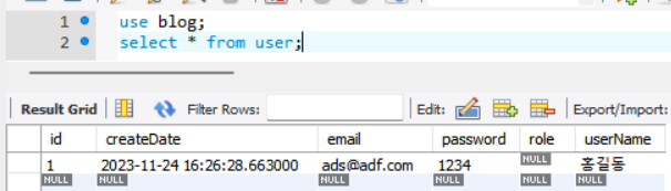 쿼리가 이렇게 되면 당연히 role값으로 null이 들어가게된다.