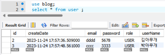 insert test를 하다가 망가진 1번 데이터를 Delete해보자