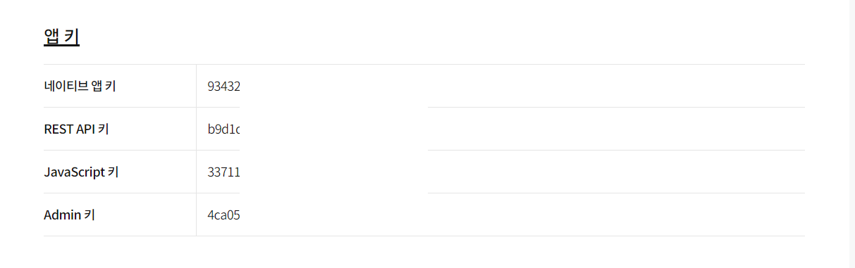 애플리케이션을 클릭하면 앱 키가 나오는데 여기서 우리는 REST API를 사용할꺼다