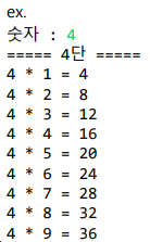 사용자로부터 입력 받은 숫자의 단을 출력하세요.