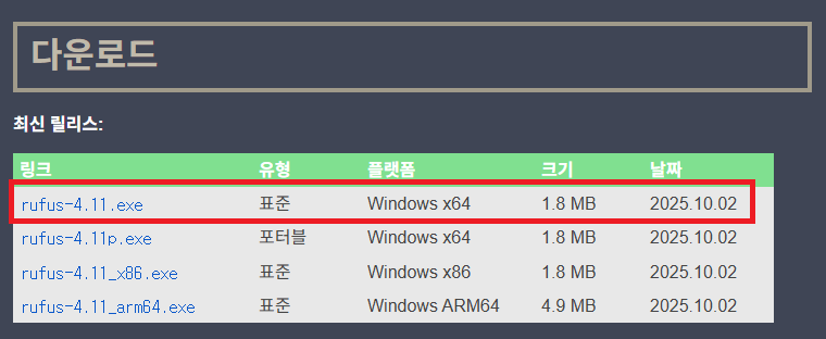 2️⃣ Rufus 다운로드 (부팅 USB 만드는 프로그램)