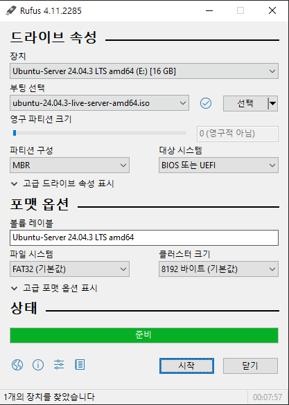 Rufus와 Ubuntu Server ISO 파일을 다운받았으면, 이제 설치용 USB를 만들 차례다.