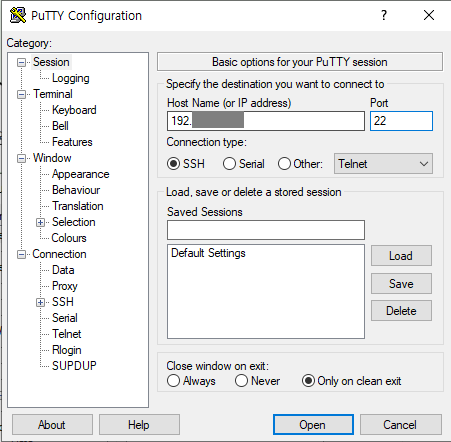 Connection type: SSH