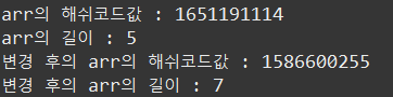 System.out.println("변경 후의 arr의 해쉬코드값 : " + arr.hashCode());