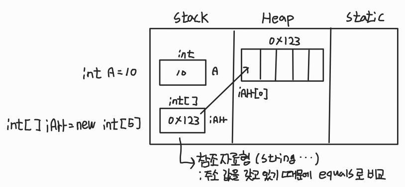 System.out.println("arr1이랑 arr2가 같나요? : " + (arr1[0] == arr2[0])); // true, 값을 비교