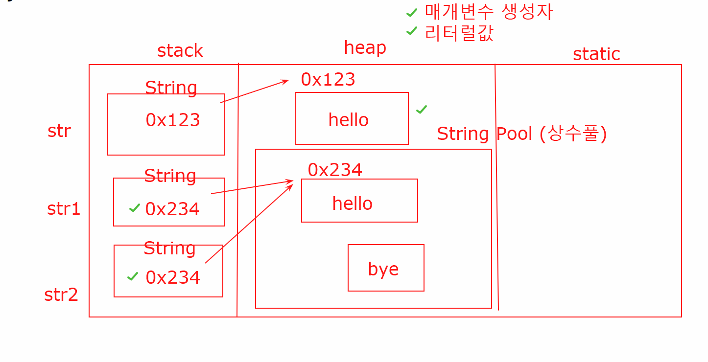 System.out.println(str1 == str2); // 주소값을 비교하니까 당연히 false