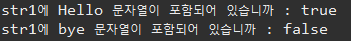 System.out.println("str1에 Hello 문자열이 포함되어 있습니까 : " + str1.contains("Hello"));