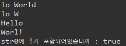 System.out.println("str0에 !가 포함되어있습니까 : " + result.contains("!"));