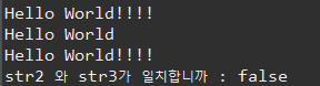 System.out.println("str2와 str3가 일치합니까(equals) : " + str2.equals(str3));
