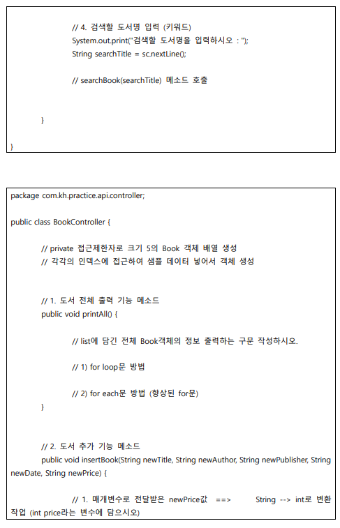 // 전달받은 검색명을 포함(HINT : String클래스의 contains메소드 활용)한!! 도서들 전체 출력