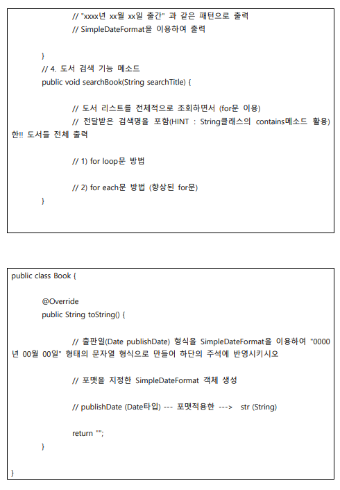 // 출판일(Date publishDate) 형식을 SimpleDateFormat을 이용하여 "0000년 00월 00일" 형태의 문자열 형식으로 만들어 하단의 주석에 반영시키시오