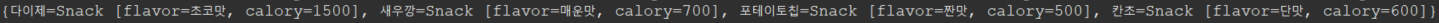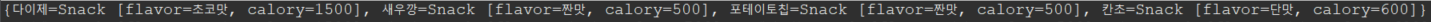 hm.put("포테이토칩", new Snack("짠맛", 500));