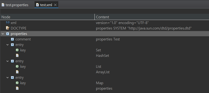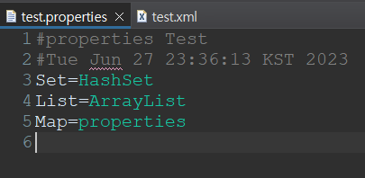 Properties : Map 계열의 컬렉션 => 키 + 벨류 세트로 저장