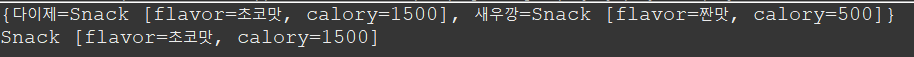 hm.put("새우깡", new Snack("짠맛", 500));