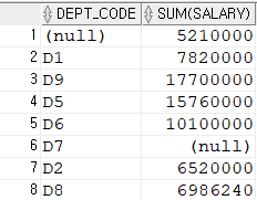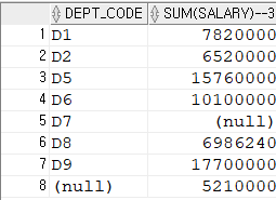 SELECT DEPT_CODE, SUM(SALARY) -- 3