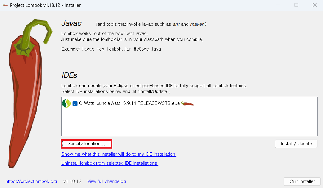 C:\Users\사용자명\.m2\repository\org\projectlombok\lombok\1.18.12 폴더로 이동한다.