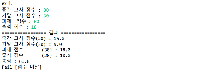 System.out.println("Fail [점수 미달]");