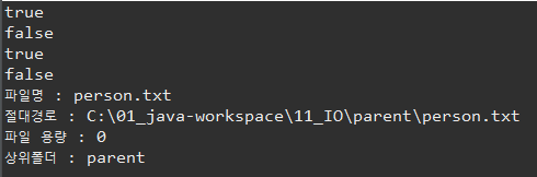 System.out.println(f1.exists()); // 파일 존재여부 true/false