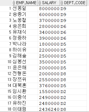 SELECT EMP_NAME, SALARY, DEPT_CODE