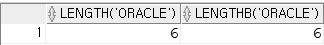 SELECT LENGTH('ORACLE'), LENGTHB('ORACLE')