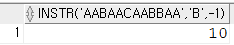 SELECT INSTR('AABAACAABBA', 'B', 1, 2) FROM DUAL;
