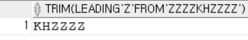 --SELECT TRIM('ZZZZKHZZZZ', 'Z') FROM DUAL; <= 얘는 안된다.