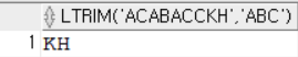 SELECT LTRIM('ACABACCKH', 'ABC') FROM DUAL;